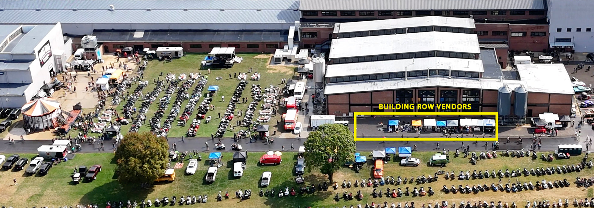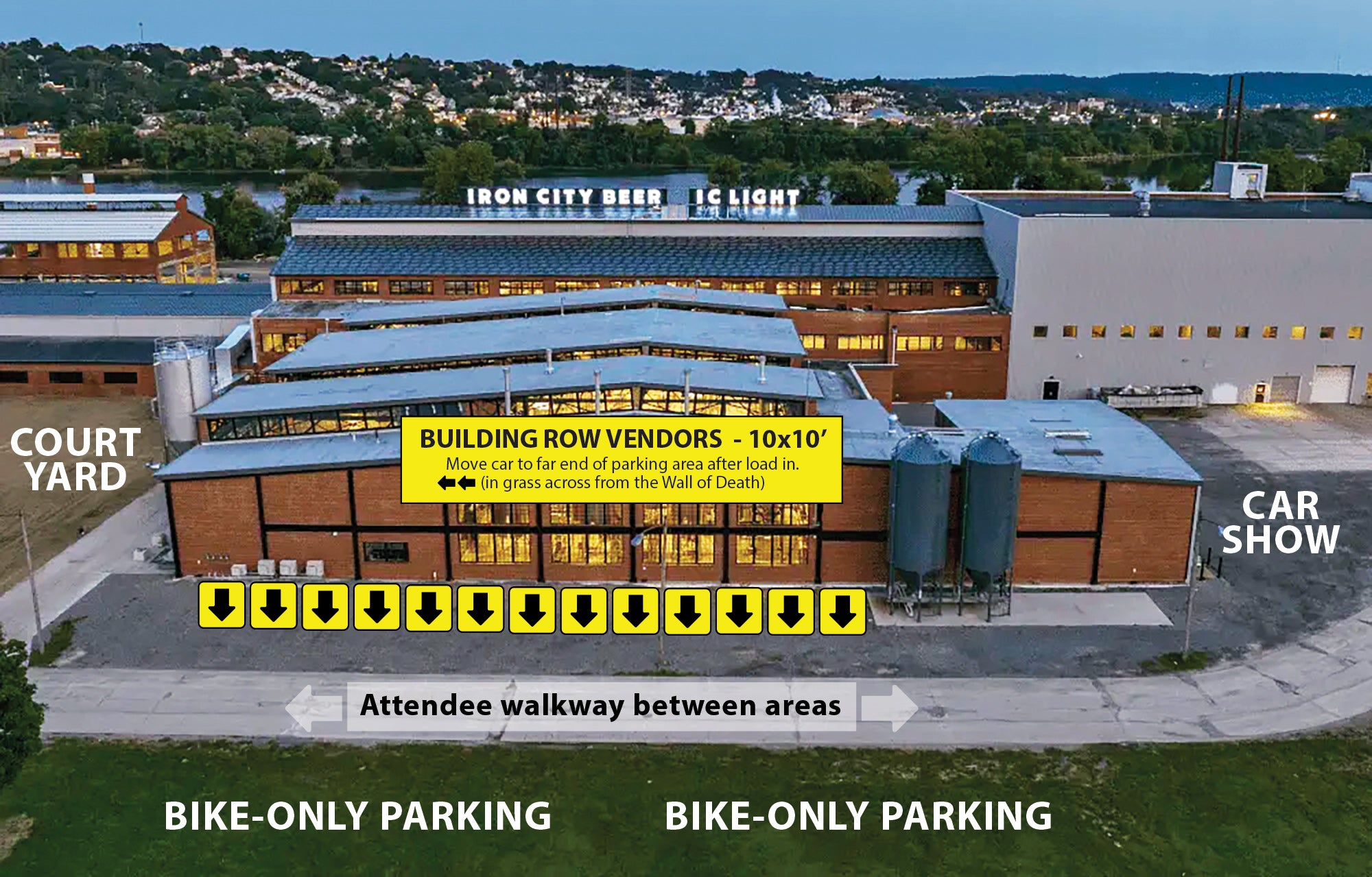 - Building Row vendors are set up along the outside of the Brew House on a gravel surface. Bring weights if using a tent. Vehicles must be moved to area shown on map below after loading in.